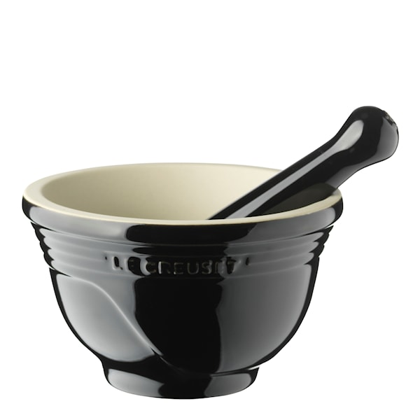 Mortel i stengods från Le Creuset. Sätt smak på maten med nystötta kryddor och örter. Stengodset absorberar inte smak eller färg från dina kryddor. Insidan av morteln samt stötens ände är oglaserade vilket ger optimal effektivitet och hygien. Ger en vacker färgklick till det kök!
