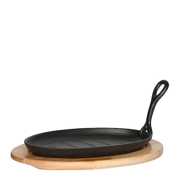 Det avtagbara handtaget gör att du enkelt kan servera direkt ur pannan, och underlägget i gummiträ (33 x 22 cm) skyddar bordsytor samtidigt som det ger en fin presentation. En smart lösning för varma serveringar med stil.