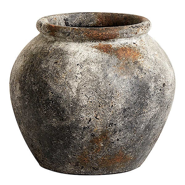 Krukan är idealisk för att arrangera torkade dekorationer eller blommor och kan kombineras med andra produkter i serien för att skapa ett vackert och mångsidigt utseende i hemmet. Eftersom krukan inte är vattentät, rekommenderar vi att använda en vattentät hink eller ett plastskydd inuti för att förhindra läckage. Krukan är avsedd för inomhusbruk, och vi avråder från att plantera direkt i den. För att uppnå extra stabilitet kan du fylla krukan med torr sand. Om krukan skulle få en liten skada, kan den enkelt repareras genom att duttas med färg i samma nyans som krukan.
