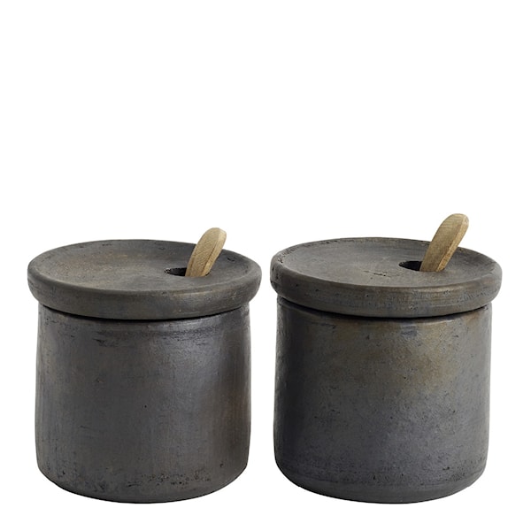 Hazel salt- och pepparset i två delar från Muubs är ett minimalistiskt och stilrent tillskott till din bordsdukning. Setet är handgjort i terrakotta och sedan bränt i en lerugn, vilket ger varje del en unik färg och textur. De små, eleganta skålarna är perfekta för att ha på bordet och deras varma, organiska utseende kompletterar vilken dukning som helst. Observera att saltskedarna inte ingår i setet, men de kan köpas separat om så önskas.