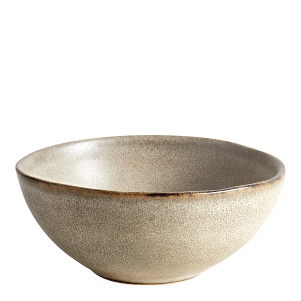 Stengodset är behandlat med en reaktiv glasyr som ger varje skål en särskild karaktär och lekfull färgvariation. Observera att skärmärken kan förekomma vid användning, och tänk på sandstranden medan du känner den grova ostronglasyren mot fingertopparna.