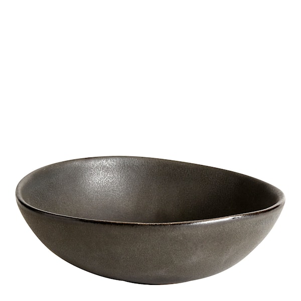 Skålen är behandlad med en reaktiv glasyr som ger varje del en särskild karaktär och lekfull färgvariation. Vissa skärmärken kan uppstå vid användning, och du kan föreställa dig en sandstrand medan du känner den grova ostronglasyren mot fingertopparna.