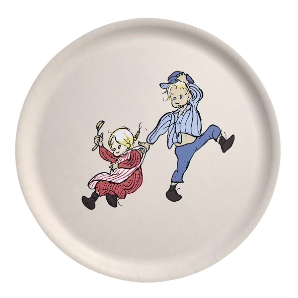 Serveringsbricka av björkfanér med matt laminering. Illustration även på baksidan. Handgjord, tål maskindisk.
