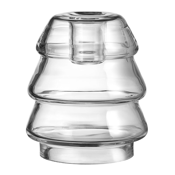 Denna glasljusstake från Muurla är en mångsidig och stilfull inredningsdetalj som förhöjer stämningen i varje rum. Formad som en gran och med en höjd på 10,5 cm och en diameter på 9,5 cm, passar den perfekt för både vanliga ljus och LED-ljus. Ljusstaken kan även vändas upp och ner och användas som en liten skål eller vas, vilket gör den till ett flexibelt inslag i ditt hem. Du kan dessutom fylla den med små dekorationer undertill för att skapa en personlig touch och matcha din övriga inredning. Med sin unika design blir denna glasljusstake ett stämningsfullt inslag som passar både till vardags och till fest.