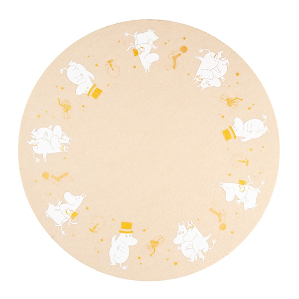 Mumin bordstablett 38 cm Gnistrande stjärnor från Muurla är en vacker detalj som skapar en dekorativ och inbjudande dukning. Tillverkad av ett filtliknande material, bjuder den på ett gnistrande Muminmotiv som ger en lekfull och vintrig känsla till bordet. Perfekt för både vardag och fest, och enkel att hålla ren – bara torka av med en fuktig trasa för att hålla den fräsch. Denna bordstablett blir ett stämningsfullt inslag som förgyller varje måltid med Mumintrollens charm och stil.