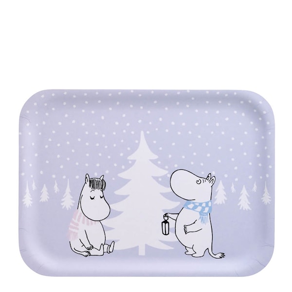 Mumin bricka från Muurla är en handgjord serveringsbricka i björkfanér, dekorerad med ett härligt Mumin-motiv som fångar känslan i Muminvärlden. Med måtten 27x20 cm är brickan perfekt för att servera frukost och fika eller som en dekorationsbricka i hemmet som kan sprida glädje.