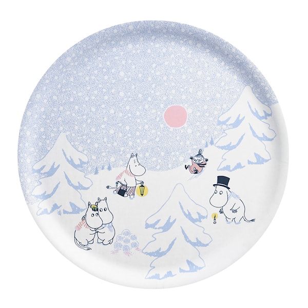 Denna Mumin bricka "Låt det snöa" från Muurla är en charmig och funktionell serveringsbricka som lyfter varje dukning med sitt vintriga motiv. Tillverkad av björkfanér med en matt laminering, kombinerar brickan hållbarhet med en stilfull finish som framhäver de älskade Mumintrollen i ett snöigt landskap. Med en generös diameter på 35 cm är den perfekt för att servera allt från frukost till eftermiddagsfika på ett snyggt och inbjudande sätt. Handgjord och tålig, den tål även maskindisk, vilket gör den både praktisk och lättskött. En fantastisk detalj som för in både funktion och sagokänsla i ditt hem.