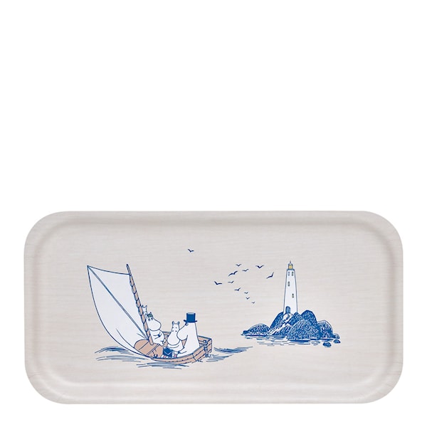 Skepp Ohoj! Mumin Sjömän är en kollektion med ett nautiskt vitt och blått färgtema kryddat med några härliga Mumindetaljer. Tove Jansson älskade havet - och det är därför havet har en så viktig roll i hennes Muminberättelser och illustrationer. Muurlas brickor är handgjorda i Finland av björkfanér. Melaminlamineringen gör dem praktiska, hållbara och diskmaskinssäkra.