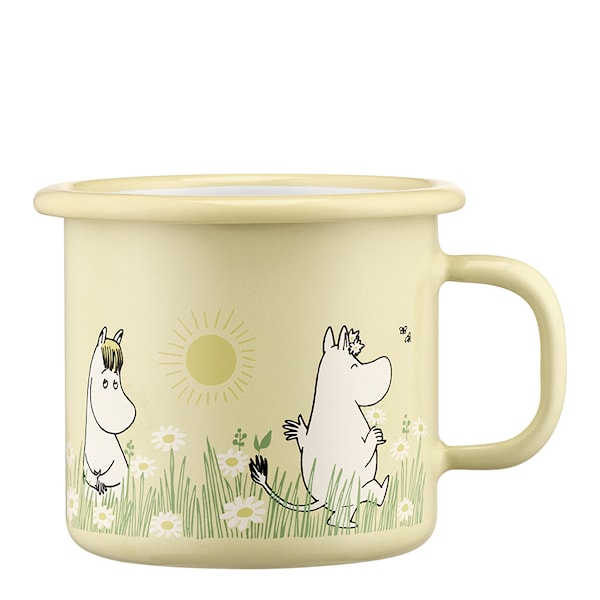 Mumin emaljmugg 25 cl "Äng ljusgul" från Muurla är en tålig och lätt mugg som passar både för hemmabruk och äventyr utomhus. Tillverkad av kolstål med dubbel emaljbeläggning, är den både reptålig och enkel att använda. Den kompakta storleken på 25 cl gör den bekväm att hålla och idealisk för både små och stora händer.