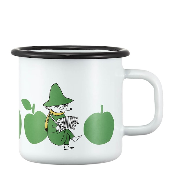 Denna robusta emaljmugg från Muurla är en Muminmugg tillverkad i kolstål med dubbla lager emalj, vilket gör den extra slitstark men samtidigt lätt att bära med sig. Den rymmer 37 cl och fungerar utmärkt för både varm choklad och kalla drycker. Tål diskmaskin, men inte mikrovågsugn.