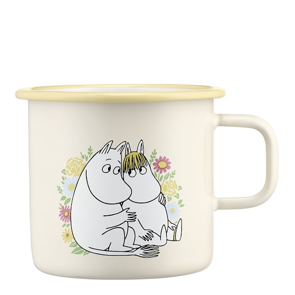 Mumin emaljmugg 55 cl "Blommor vit" från Muurla är en rymlig och praktisk mugg för alla tillfällen. Tillverkad av kolstål med en dubbel emaljbeläggning är den både lätt och tålig. Den generösa storleken gör den perfekt för en stor kopp te, varm choklad eller en svalkande kall dryck, vare sig du är hemma, vid lägerelden eller på jobbet. Muggen är lätt att ta med och enkel att rengöra då den tål maskindisk.