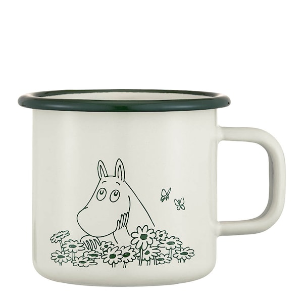 Muurla Mumin emaljmugg Sommarflört 37 cl vit är både tålig och lätt – tillverkad i kolstål med dubbla emaljlager för extra hållbarhet. Med sitt charmiga Muminmotiv passar den lika bra på frukostbordet som i ryggsäcken på utflykten.