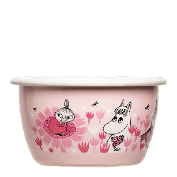 Mumin emaljskål från Muurla, med en diameter på 12 cm, är en söt och praktisk skål dekorerad med ett Muminmotiv i rosa. Skålen är tillverkad med en kärna av kolstål, som är täckt med en dubbel beläggning av emalj, vilket ger den både hållbarhet och lätthet. Denna kombination av styrka och lättvikt gör skålen idealisk för användning både inomhus och utomhus, oavsett om du serverar snacks hemma eller tar med den på en utflykt. Skålens charmiga Muminmotiv och mjuka rosa färg gör den till ett fint och funktionellt tillskott till ditt kök eller picknickkorg.