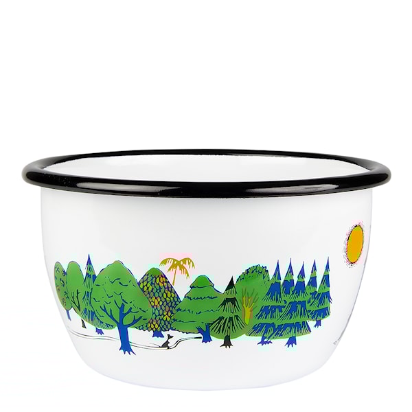 Emaljerad skål från Muurla med ett lekfullt motiv inspirerat av Tove Janssons älskade berättelser om Mumintrollet och hans vänner. Skålen är tillverkad i slitstark kolstål med en dubbel beläggning av emalj, vilket gör den hållbar, funktionell och lätt. Den här skålen är perfekt till frukosten eller desserten, och kommer att älskas i många år framöver! Volym 60 cl.