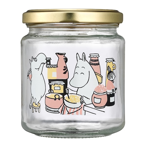 Denna Mumin glasburk från Muurla rymmer 0,3 liter och levereras med fyra klistermärken så att du själv kan välja vilket Muminmotiv du vill dekorera den med. Med metallock och robust glas är den perfekt för sylt, snacks eller som en personlig gåva. Burken tål diskmaskin och är enkel att hålla ren.