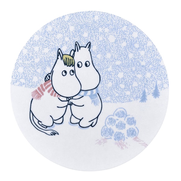 Detta Mumin glasunderlägg Låt det snöa från Muurla är en perfekt kombination av funktion och vacker design. Tillverkat av hållbart björkfanér med en skyddande laminering, är detta underlägg både tåligt och lätt att rengöra, och det tål maskindisk för smidig användning. Med en diameter på 10 cm och en charmig illustration på båda sidor, fångar det vinterns magi och blir en fin dekoration på vinterbordet. Perfekt för att skydda bordet samtidigt som det tillför en lekfull och stämningsfull känsla till din dukning, inspirerad av Mumintrollens älskvärda värld.