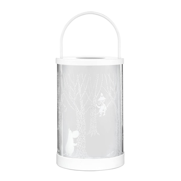 Skapa stämning med denna robusta lykta från Muurla, med fint Muminmotiv inspirerat av skogens stillhet. Den 26 cm höga lyktan kombinerar metall och cylinderglas för ett elegant uttryck och stabil konstruktion.