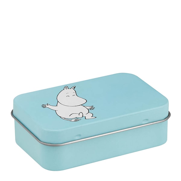 Muurla Mumin plåtburk Mumin 10x6,5 cm blå är en liten, robust burk med gångjärnslock och ett klassiskt Muminmotiv i blå färgskala. Perfekt för små ting – från hårsnoddar till tepåsar – och enkel att ta med eller förvara hemma.