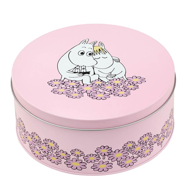 Muurla Mumin plåtburk rund Tillsammans 15 cm rosa är en dekorativ och praktisk burk i metall – idealisk som kakburk eller för andra torra varor. Med sitt rundade format och charmiga Muminmotiv är den ett fint inslag i varje hem.