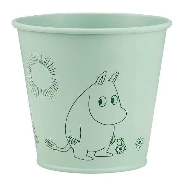 Muurla Mumin plåtkruka 11 cm grön är en dekorativ liten kruka i galvaniserat stål med Muminmotiv. Den runda formen och kompakta storleken gör den perfekt för små växter, örter eller som en rolig inredningsdetalj i kök eller barnrum.