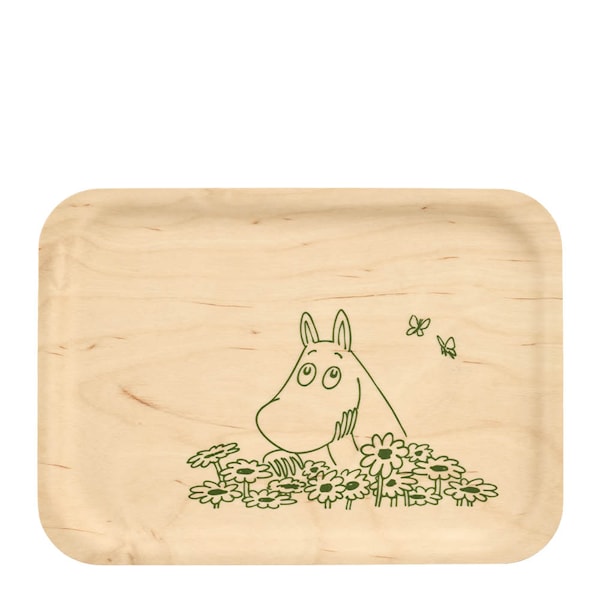 Muurla Mumin serveringsbricka Sommarflört 27x20 cm vit är en mångsidig bricka som passar lika bra till frukost som till eftermiddagsfikat. Tillverkad i tålig björkfanér med matt laminat – slitstark, lätt och maskindiskbar.