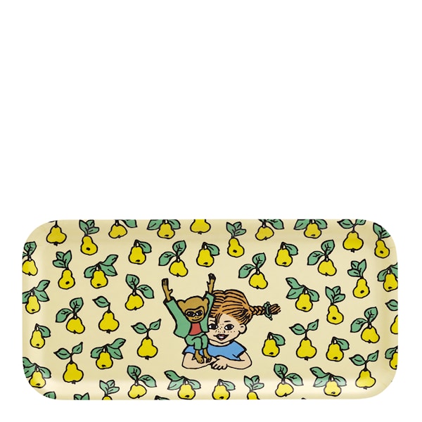 Pippi bricka 27x13 cm "Frukter gul" från Muurla är en charmig och praktisk serveringsbricka som passar perfekt för fikastunden. Tillverkad av PEFC-certifierad björkfanér och handgjord med en matt laminerad yta är den både tålig och lättskött. Den rymmer enkelt en kopp eller ett glas tillsammans med en kaka, vilket gör den idealisk för vardagens små pauser.