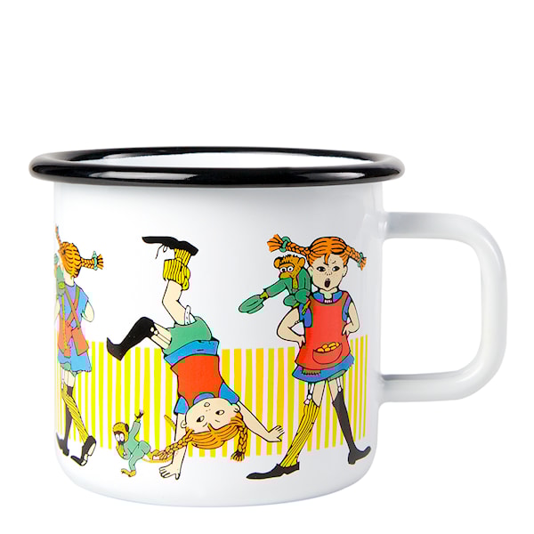 Emaljerad stålmugg från Muurla med ett lekfullt motiv inspirerat av Astrid Lindgrens älskade berättelser om Pippi Långstrump. Muggen är tillverkad i slitstark kolstål med en dubbel beläggning av emalj, vilket gör den hållbar, funktionell och lätt. Den här muggen kommer att älskas i många år framöver och finns med en mängd olika motiv, bara att välja din favorit!