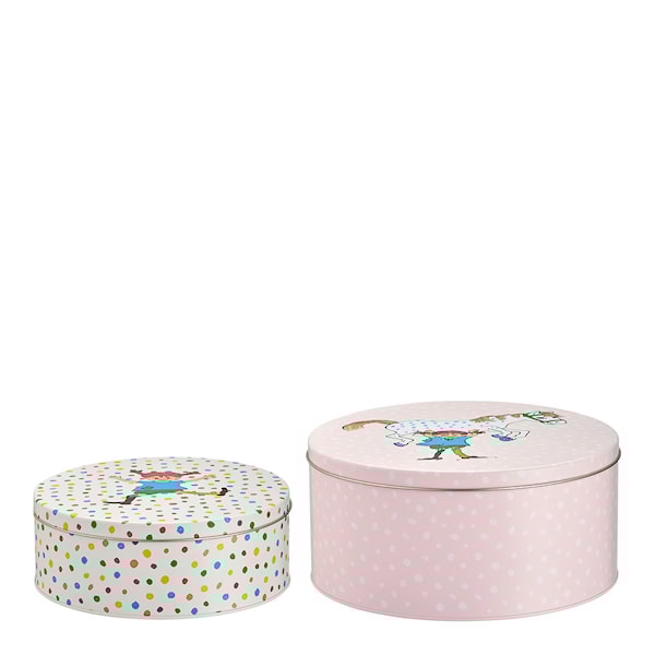 Det här härliga setet med två Pippi Långstrump-plåtburkar från Muurla är både praktiskt och charmigt, perfekt för att förvara små skatter eller organisera barnrummet. En burk pryds av det sprudlande Hoppsansa-motivet medan den andra har en härligt rosa design med en illustration av Pippi och Lilla Gubben. Med måtten 22x22 cm rymmer dessa runda burkar allt från leksaker och pysselmaterial till godsaker som kakor. De är inte bara funktionella utan också ett roligt inslag som för med sig Pippis oemotståndliga glädje in i hemmet. Ett underbart sätt att hålla ordning med stil!