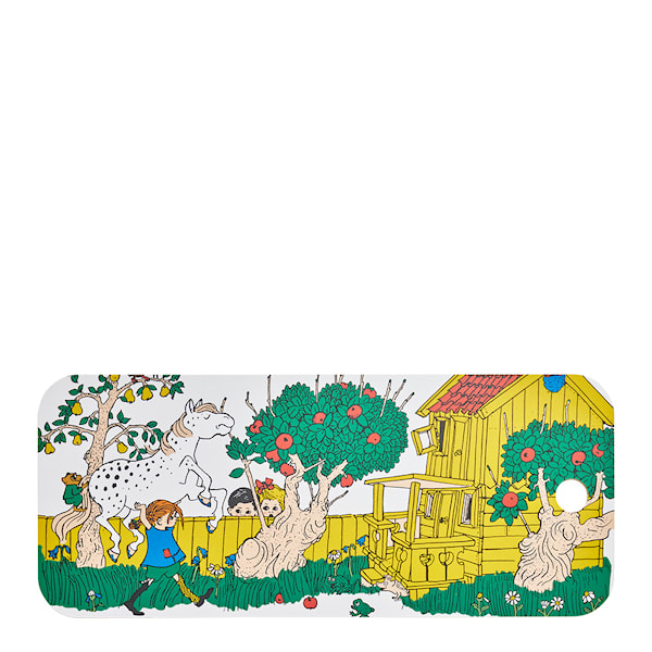 Pippi Långstrump skär- och serveringsbräda, handgjorda av björkfanér i Finland! Motivet Vägen hem har den ikoniska illustrationen av Ingrid Vang Nyman, som visar Pippi återvända till Villa Villekulla - bärandes på Lilla Gubben. Muurla Chop & Serve-brädor kan användas för tillagning och servering av mat. De har tryck på båda sidor och tål maskindisk.