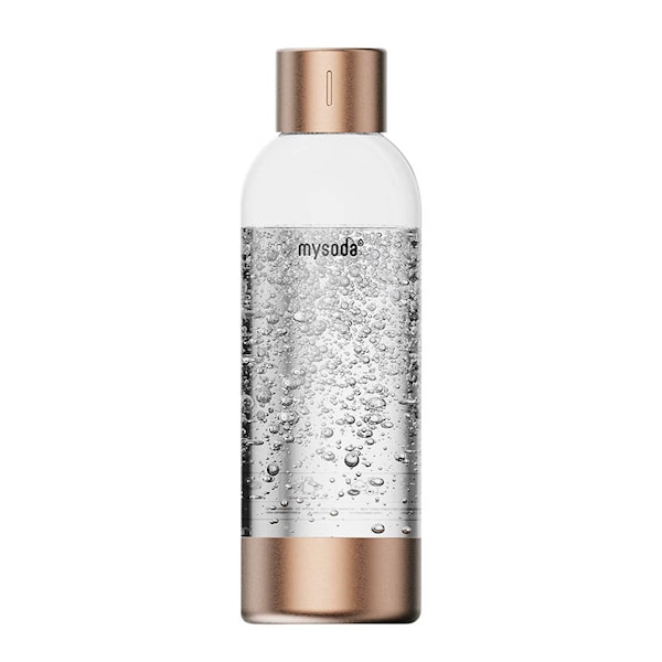 Mysoda premiumvattenflaska 1 L - tillverkad av BPA-fri plast och kompatibel med alla Mysodas kolsyremaskiner samt maskiner från andra märken. Denna eleganta flaska finns i färgerna svart, silver och kopparröd, och är utformad för att ge en förstklassig upplevelse av kolsyrat vatten.