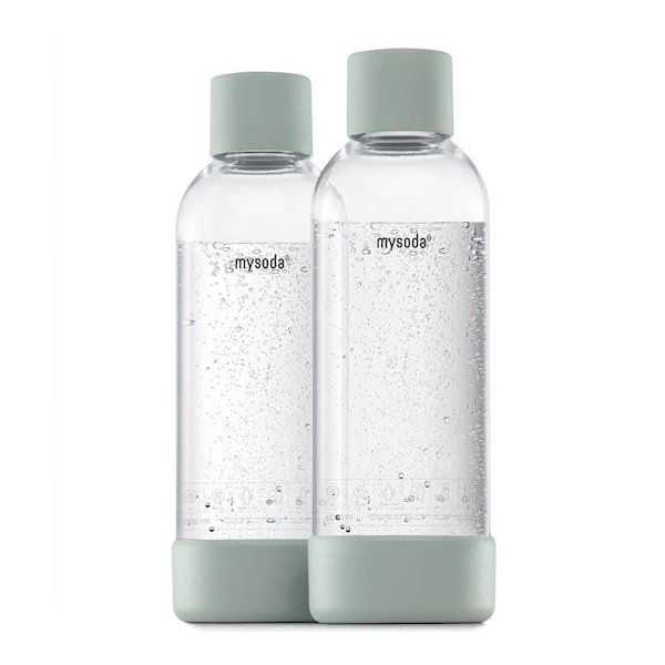 Woody flaska 1 L 2-pack från Mysoda är tillverkade av BPA-fri plast och kompatibla med alla Mysodas kolsyremaskiner samt andra märken. Dessa flaskor finns i två storlekar, 1 liter och 0,5 liter, och erbjuds i flera färger.