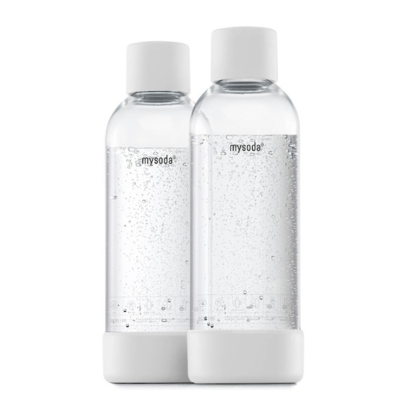 Woody flaska 1 L 2-pack från Mysoda är tillverkade av BPA-fri plast och kompatibla med alla Mysodas kolsyremaskiner samt andra märken. Dessa flaskor finns i två storlekar, 1 liter och 0,5 liter, och erbjuds i flera färger.