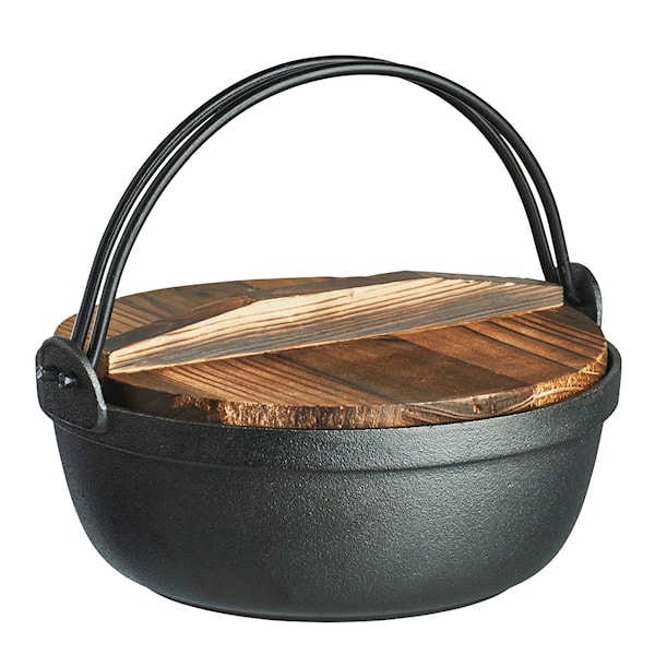 Nabe gjutjärnsgryta från japanska Satake. Grytan rymmer 1,8 liter och kommer med två olika lock. Ett praktiskt och ugnssäkert glaslock och ett vackert trälock med handtag för servering.