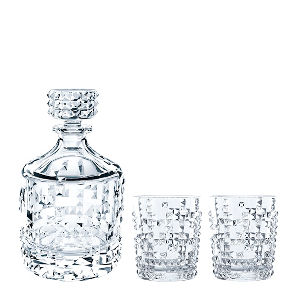 Kristallglasserien Punk från tyska Nachtmann ger ett starkt uttryck, utformad med nitar och rutnät, de klassiska punksymbolerna. Det var den unga designern Anke Buchman vid den världsberömda konst- och designhögskolan Central Saint Martin's som skapade denna utåtriktade serie, inspirerad av London och den engelska punken. Hon fick detta uppdrag för att uppmärksamma att punken firar 40 år. Denna whiskykaraff är perfekt och lyxig att servera whisky, eller kanske konjak ur, blir en fin inredningsdetalj också. De tillhörande tumblerglasen i 2-pack gör känslan komplett.