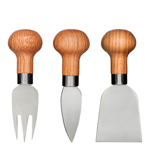 Till dessertostar är det alltid trevligt att kunna lägga fram fina, för ändamålet avsedda ostknivar. Sagaforms serie Oval Oak innehåller en parmesanostkniv, en ostkniv för hårdare ostar och en ostgaffel. Bladen är gjorda i rostfritt stål och skaftet i klassiskt ekträ.