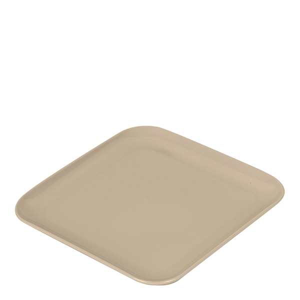 Mindre fyrkantig tallrik i sandfärgat porslin som mäter 18x18 cm från norska Modern Houses Nemo-serie.