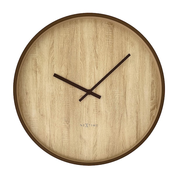 NeXtime Oslo Large väggklocka 50 cm brun är en imponerande väggklocka som kombinerar skandinavisk funktionalitet med japanskt lugn. Det stora formatet ger ett tydligt visuellt intryck, medan den stilrena designen speglar Japandi-stilens fokus på balans och naturliga material. Klockan har ett elegant plasthölje med realistiskt träutseende, där vattenöverföringsteknik framhäver strukturen i ytan. Den minimalistiska urtavlan låter träets varma uttryck komma till sin rätt och skapar en lugn och harmonisk atmosfär i rummet.