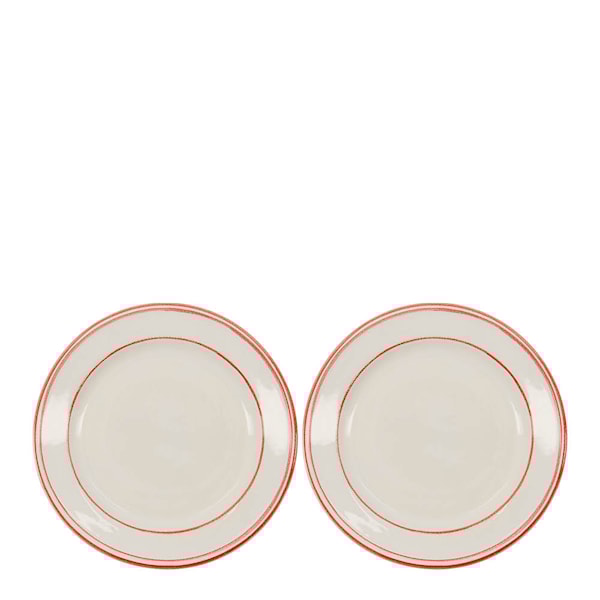 Nicolas Vahé Bistro lunchtallrikar 21 cm 2-pack röd/vit förmedlar klassisk design med en modern twist. Den röda kanten ger ett levande uttryck, och den tåliga finishen i glaserat stengods gör dem idealiska för daglig användning.