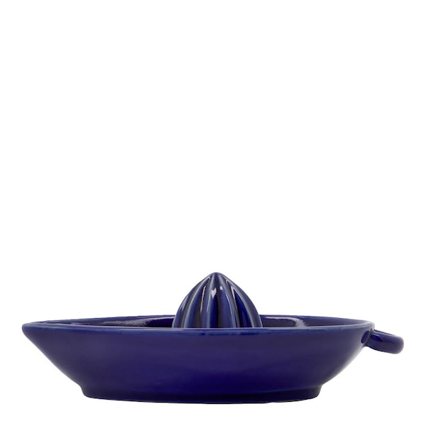 Nicolas Vahé Citruspress blå är ett praktiskt köksredskap i vackert glaserat stengods. Den djupblå färgen ger ett elegant uttryck, medan handtaget och pipen gör det enkelt att pressa och hälla – perfekt för allt från citron till lime och apelsin.
