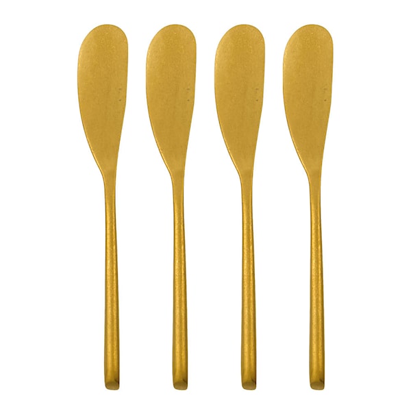 Nicolas Vahé Daily smörknivar är tillverkade i metall med vacker antik guldfinish. Det enkla, runda skaftet ligger bekvämt i handen och gör knivarna praktiska att använda.