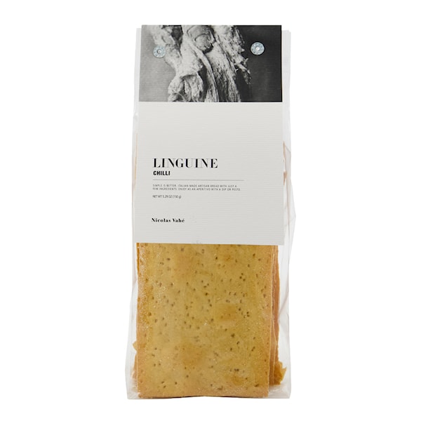 Deli Linguine Chili från Nicolas Vahé tar dig med på en smakresa med detta krispiga pastabröd, perfekt som komplement till en dipp eller pesto. Med bara några få, noga utvalda ingredienser har detta tunna och krispiga bröd fått en hint av chili för att ge en härlig kryddig smak. Använd det för att doppa i hummus som ett snabbt mellanmål eller inkludera det som en del av en läcker förrätt och njut av en smak av Italien med varje tugga.