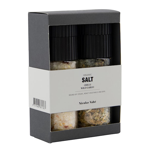 Presentask Chili Salt & Vild Vitlök från Nicolas Vahé är den perfekta gåvan för alla matälskare. Denna presentask innehåller två spännande kryddor som kommer att ge extra smak till varje rätt.