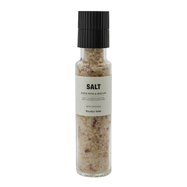 Nicolas Vahé Salt vitt vin & schalottenlök 310 g är ett exklusivt havssalt som förhöjer smaken på både vardagsmat och helgrätter. Med toner av vitt vin och schalottenlök passar det perfekt till fisk, fågel och ljusa såser – eller som ett dekorativt bordsalt.