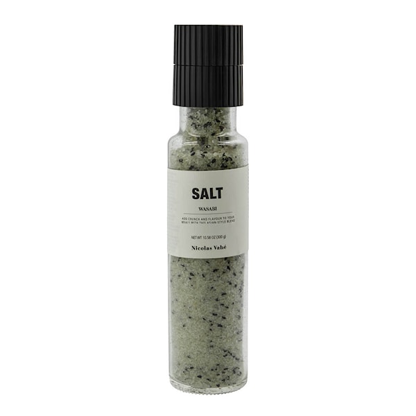 Nicolas Vahé Salt wasabi 300 g är ett smakrikt havssalt med asiatisk känsla. Kombinationen av wasabi och svarta sesamfrön ger en mild hetta och fyllig arom som passar särskilt bra till fisk, skaldjur, risrätter och sallader.