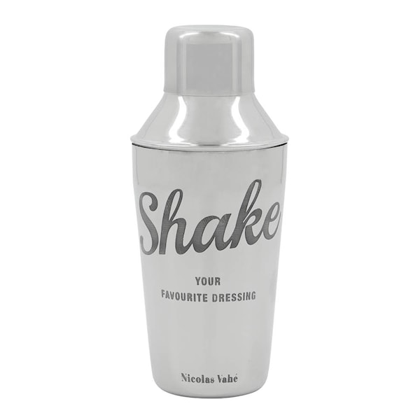 Nicolas Vahé shaker i rostfritt stål med silverfinish är ett elegant redskap för både matlagning och drinkar. Perfekt för att blanda vinaigretter, dressingar och cocktails.