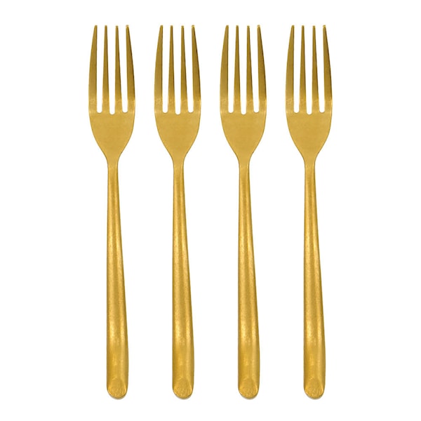Nicolas Vahé tårtgafflar i 4-pack är tillverkade i rostfritt stål med en elegant antik guldfinish. De är små och smidiga, perfekta till tårta, dessert, frukt eller smårätter.