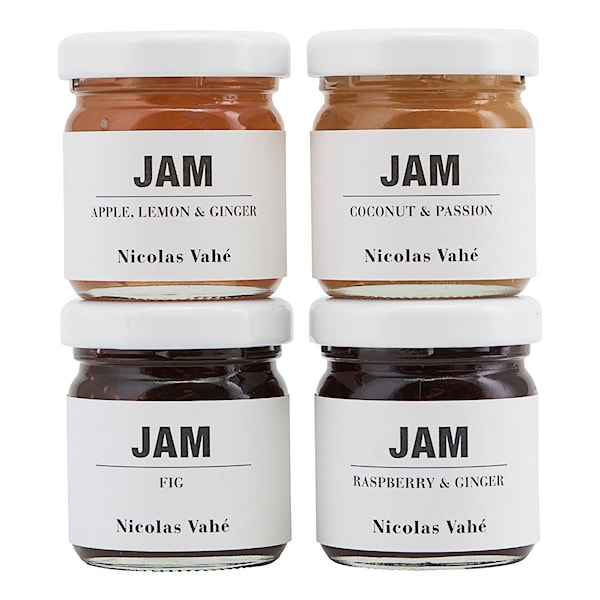 4-pack med lyxig marmelad eller sylt från gourmetvarumärket Nicolas Vahé, som garanterat kommer att förhöja smakupplevelsen och som är perfekt som gå bortpresent. Marmeladen passar perfekt till frukostmackan eller som del av en dessert.