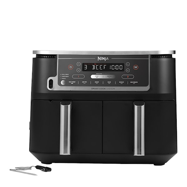 Foodi Max Dual Zone Airfryer 9,5 liter med 2470 watt effekt från Ninja tar måltidsberedningen till nya höjder. Med sin imponerande kapacitet på 9,5 liter kan du tillaga två olika maträtter på två olika sätt samtidigt och få dem färdiga samtidigt. AF451EU-modellen kan uppgraderas med Smart Cook System, vilket gör det möjligt att enkelt övervaka temperaturen med en termometer och tillaga maten till perfektion.