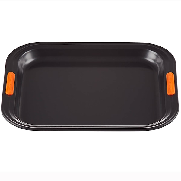 Den här rektangulära bakplåten är ett mångsidigt hjälpmedel i köket, oavsett vad du bakar. Med sin robusta konstruktion och kvadratiska form blir den snabbt oumbärlig. Dessutom gör de värmetåliga silikonhandtagen det enkelt och säkert att hantera plåten med grythandskar.