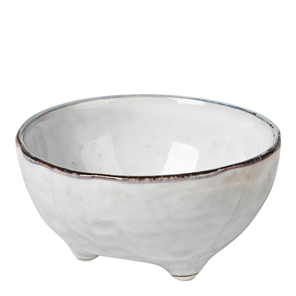 Liten skål med fötter tillverkad av stengods, ur serien Nordic Sand. Passar lika bra att servera i som till förvaring av småsaker som till exempel nycklar eller smyckena. Då skålen är tillverkad för hand så varierar glasyren något - men varje exemplar är lika fint!